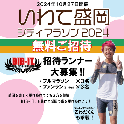 この度、10月27日(日)開催の、いわて盛岡シティマラソン2024に、BIB-IT.招待選手として参加していただくランナーさんを募集させていただきます。