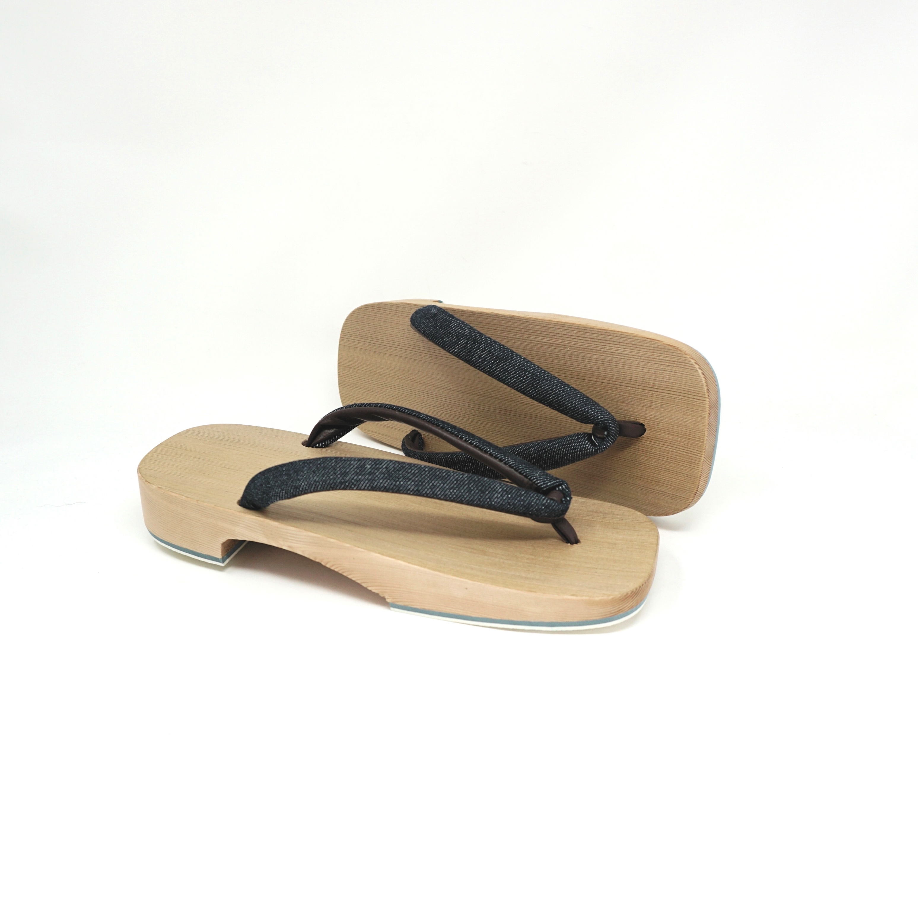 本作は、緩やかなカーブを描く幅広の台(右近型)を採用。安定感があり、サンダル感覚で素足に馴染むため、デニムやチノパンといったカジュアルな洋装から、リラックスウェアの定番である作務衣や甚平まで、スタイルを選ばずコーディネートしていただけます。