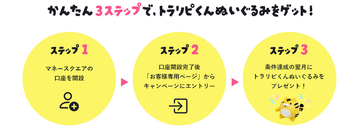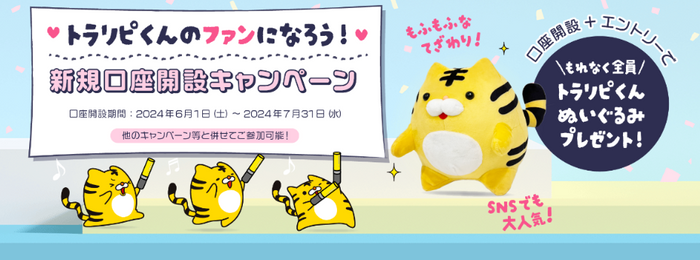 マネースクエア(本社:東京都港区、代表取締役会長兼社長:相葉 斉、以下「当社」といいます。)は、2024年6月1日より「トラリピくんのファンになろう~新規口座開設キャンペーン」をスタートいたしましたので、お知らせいたします。