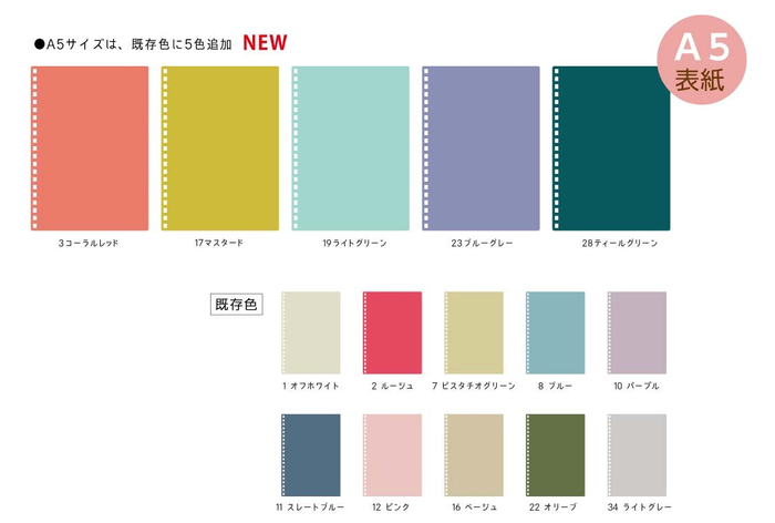 ◾️開け閉め簡単な「とじ具」A6サイズは4色展開