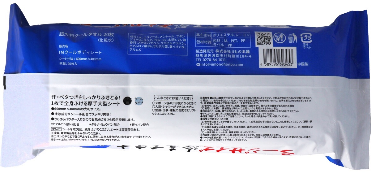 株式会社iiもの本舗(本社:東京都台東区、代表取締役:市石 一仁)は、「暑い夏、ガシガシ全身を拭きたい。」、「既存のボディーシートは小さいから一度に何枚も使ってしまう。」そんなボディーシートヘビーユーザー向けに、超大判の20枚入りボディタオル『ラージサイズ冷えてます。』を、2022年3月1日に新発売しました。