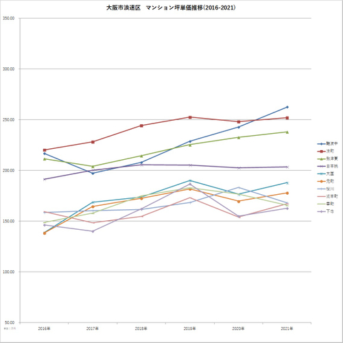 「マンションレビュー」のデータで見る「大阪都心6区のマンション相場推移5年」 中古マンション相場の町名ランキングを発表