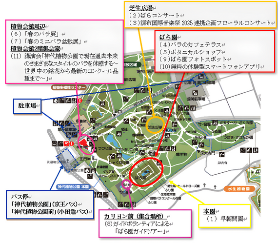 ※「春のバラフェスタ」開催期間中は混雑が予想されます。公共交通機関をご利用ください。