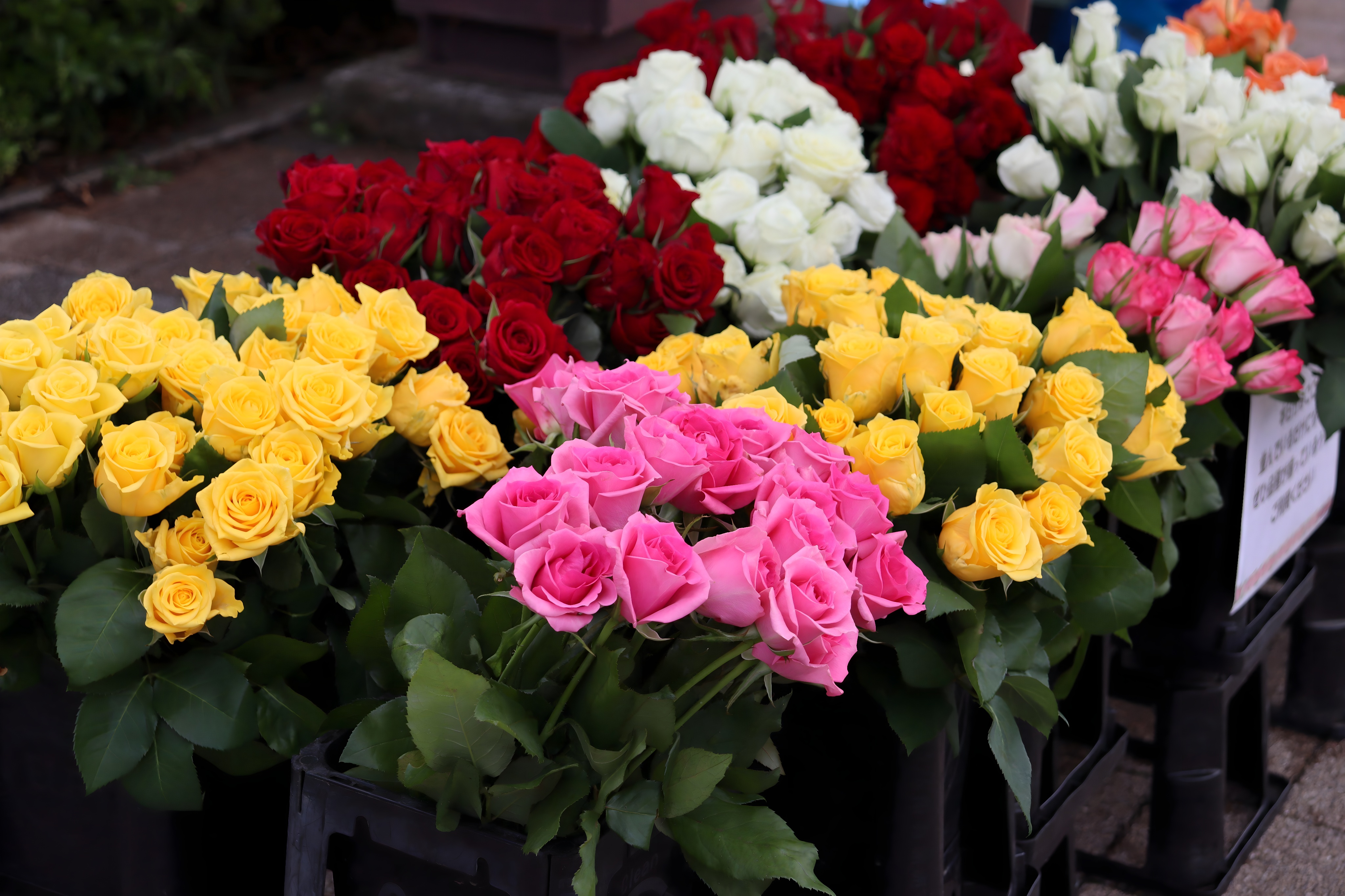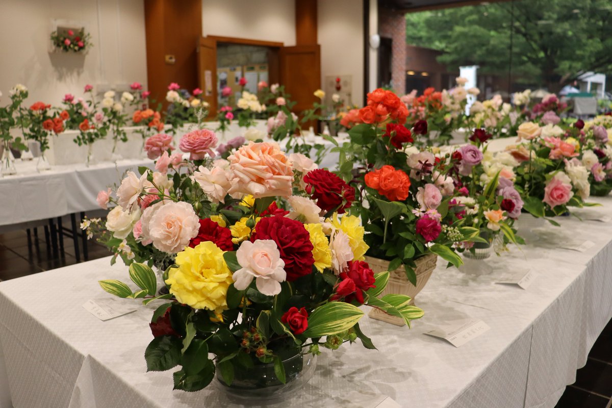 選りすぐられた多品種のバラの切花やアレンジメントが会場を彩ります。