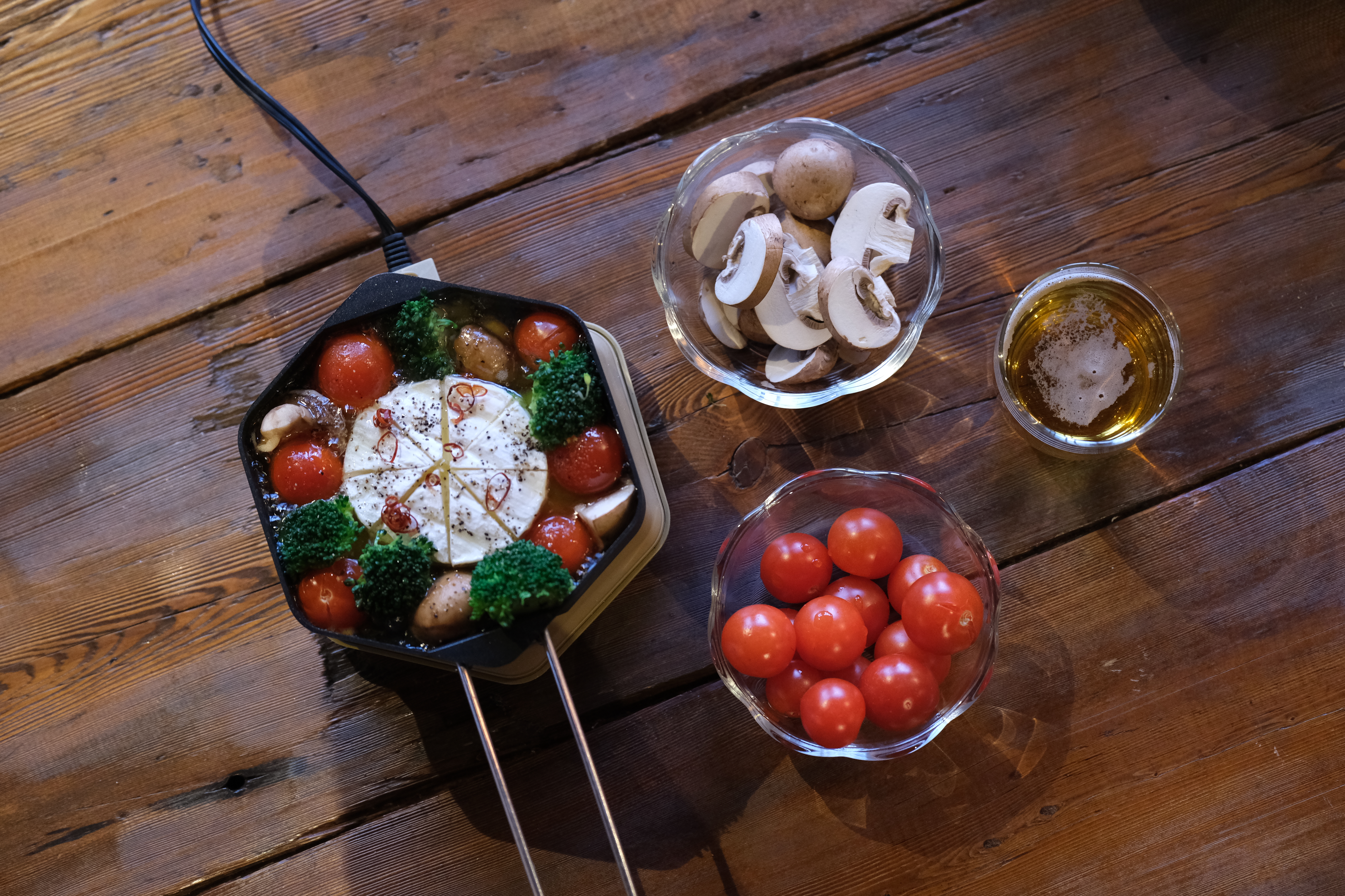 とろけるカマンベールの絶品アヒージョ。直火×油が怖くて躊躇していた方も、DuoPotなら安心です。