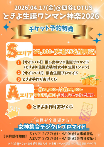 2026年4月17日(金)には、エモーショナルキングときよの生誕ワンマン神楽2026が四谷Lotusにて開催