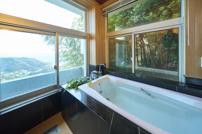 広々テラスから駿河湾を一望できる高台の温泉付き大邸宅