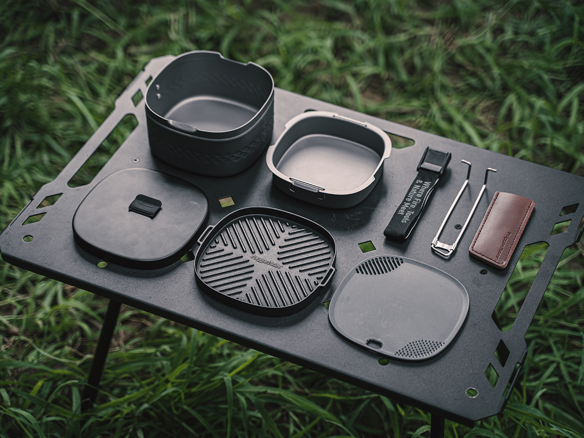 また、近年のソロキャンプ層の拡大により「多機能かつ軽量」なギアへの需要が急増しています 。従来の調理器具は単機能のものが多く、複数の料理を同時に調理するためには、いくつもの道具を持参する必要がありました。