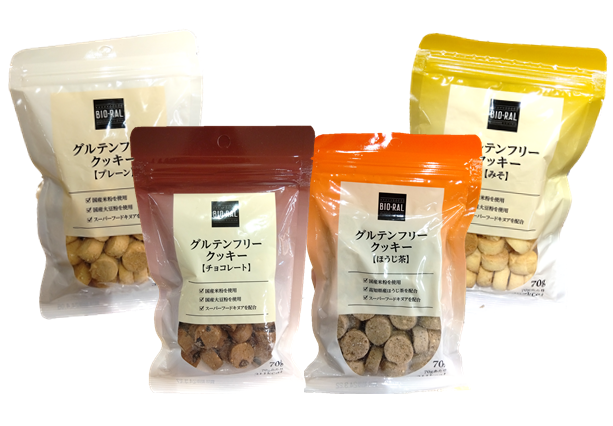 小麦粉不使用のグルテンフリークッキー。国産米粉と国産大豆粉を使用しており、味に奥行きが出てしっとりととした味わいに仕上げました。キヌアのプチプチ感がアクセントに!