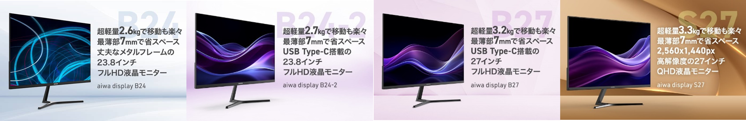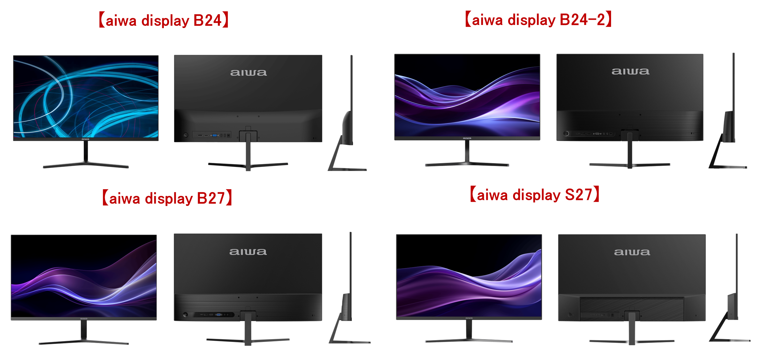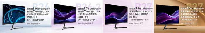 ~各製品情報の詳細はこちら~【aiwa display B24】: https://aiwa.net/products/aiwa-display-b24/ 【aiwa display B24-2】:https://aiwa.net/products/aiwa-display-b24-2/【aiwa display B27】: https://aiwa.net/products/aiwa-display-b27/