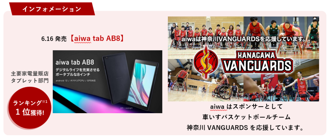 販売製品や詳細は、ECサイト「aiwaダイレクト」をご覧ください。