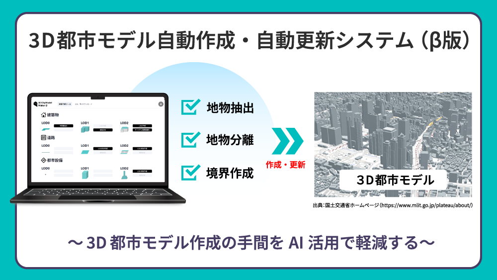 リアルグローブは「3D都市モデル」(PLATEAU)の自動作成システムのプロダクト化を実現を目指しております。