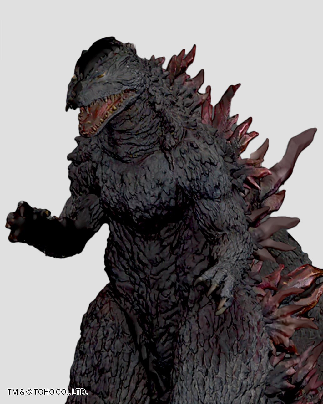 撮影に使用したゴジラスーツを3Dスキャンし、そのリアルな顔データを最新の造形テクノロジーを備えたフルカラー3Dプリンター「Stratasys J850」にて造形して製作しています。本物のゴジラから読み取った顔の形状と色データをそのままフルカラー3Dプリンターで出力して製作している為、この商品はもう「似ている」ではなくゴジラ「そのもの」となっています。