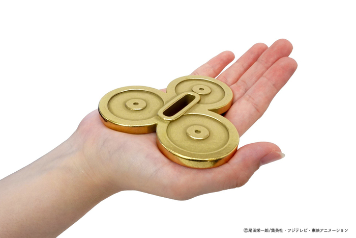様々な鋳造法の中でも、特に緻密な造形ができる「ロストワックス製法」にて、限りなく設定に近い造形で忠実に再現されています。また、材質は磨くと黄金色になる本物の真鍮で製作されています。
