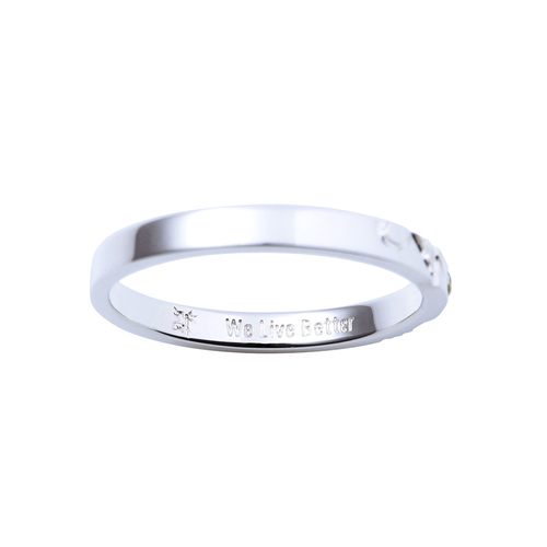 平打ちフォルムのリングに部隊ロゴをさりげなく取り込み、イメージカラーストーンをセット。