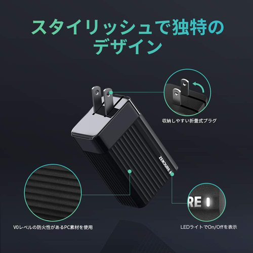 ZENDURE SuperPort S3はGaN(窒化ガリウム)技術を採用する事により、65Wの高出力充電と多ポート充電、コンパクト軽量を実現した高速ACアダプタ充電器です。