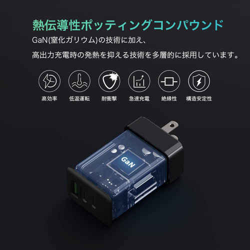 65W充電が可能なUSB-Cポートを2ポートと18W充電可能なUSB-Aポートの合計3ポートを搭載し、GaN技術による超軽量コンパクトを実現した高速充電器を発売