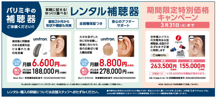 ■「レンタル」と「購入」選べるパリミキの補聴器