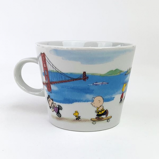 ゴールデン・ゲート・ブリッジも見えますね。観光スポートに溶け込んだチャーリーブラウンたち。見ているだけで楽しくなるマグカップなので、ご家族やお友だちとのカフェタイムも話がはずみそう♪