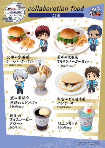 本イベントで初再現となる「赤司邸の庭」やおなじみの「マジバーガー」を再現した展示をはじめ、描き下ろしイラストを使用したイベントオリジナルグッズやキャラクター達をイメージしたコラボフードも多数販売いたします。