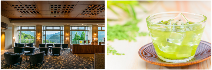 右:Premium 下呂新館ならではの1杯。岐阜県内で生産される美濃茶の中でも、白川町と東白川村を中心とした標高の高い山間部で栽培される「美濃白川茶」をご用意しています。爽やかな味と、香り高さをお楽しみください。