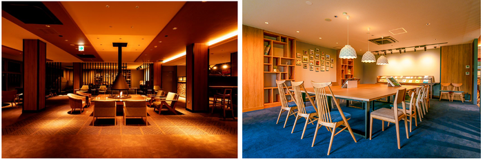 右:暖炉ラウンジ横に併設されたライブラリー。兵庫県の情報誌や、地元の歴史や文化を知ることができる書物を見ながら旅の計画を立てるのもお薦めです。