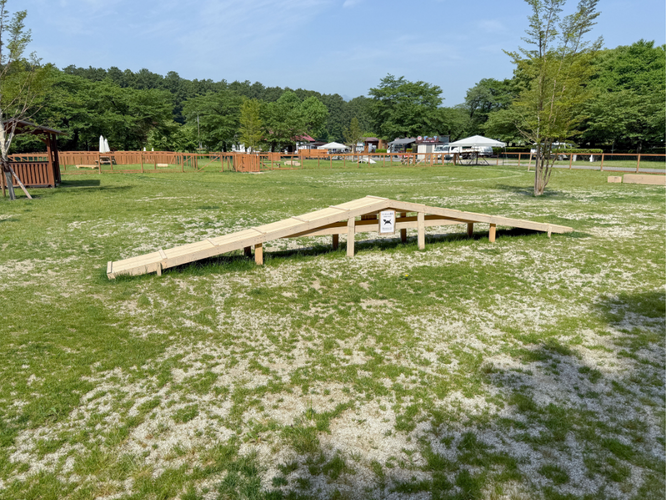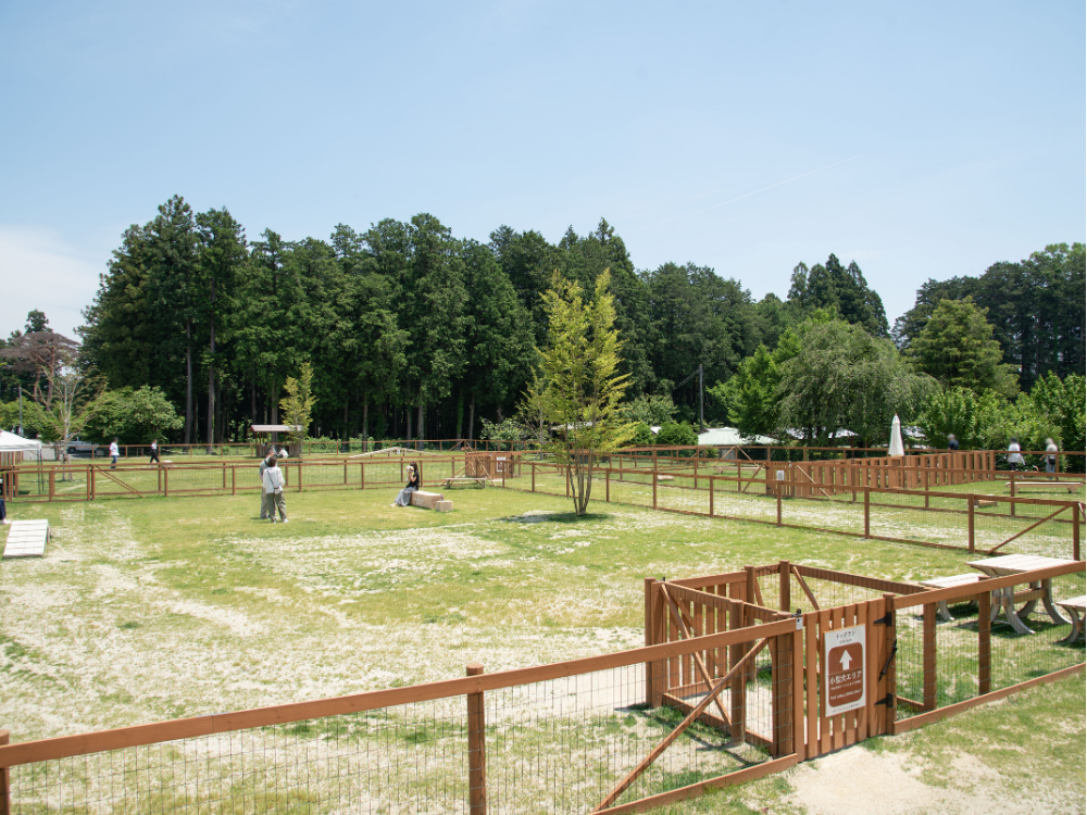 全犬種エリア、小型犬専用エリア、プライベートドッグランを整備し、アジリティも5種類完備。足洗いや給水に便利な水場、木陰、日よけ、小雨時にも休憩しやすい東屋、フォトスポットも備えており、愛犬も飼い主さまも快適に過ごしやすい環境を備えています。