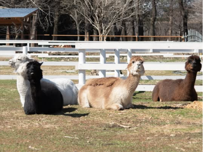 この春、新たに4頭のアルパカ(マコちゃん(白色)、ヒラちゃん(黒色)、カレイちゃん(薄茶色)、命(メイ)ちゃん(茶色))の4頭が、どうぶつふれあい広場に仲間入りしました。アルパカ以外にも、モルモット、うさぎ、羊、ヤギ、子牛など7種類約100匹の動物たちと直接ふれあうことができ、愛犬と一緒に入場しながら、柵越しにペットとどうぶつたちの写真撮影などを楽しむことができます。(リード付き)