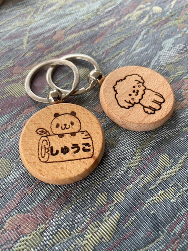 トリマーさんやママさんたちと作る愛犬の雑貨を販売。約40種の中からお好きなワンちゃんイラストの木製キーホルダーを選んでいただき、裏面に名入れいたします。 うちのこ名入れキーホルダー1 ,200円~