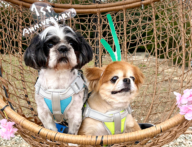 昨年4月にリニューアルしたドッグランの1周年を記念し、愛犬と写真撮影が楽しめる桜のフォトスポットを設置。フォトプロップスなどの装飾もご用意しています。
