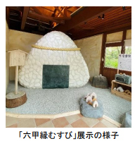 六甲ガーデンテラスでは、現代美術アーティスト・佐川好弘による巨大アート作品「六甲縁むすび」を展示しています。「シダレミュージアム2023」の出展作品で、会期終了後も多くのお客様から再展示のご要望をいただき、2024年9月から復刻展示しております。旅の目的地にもなるパワースポットをアート作品として展開する新たな試みで、おむすびをモチーフにした作品は高さ2.5m、横幅3mと超巨大。市販のおにぎりの約7万倍の大きさです。