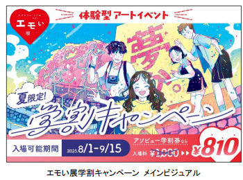 また、六甲枝垂れで好評開催中の「エモい(=心にグッときて頭から離れない)」がテーマの体験型アートイベント「シダレミュージアム2025 エモい展」では、夏限定で学生がエモい展入場チケットをお得に購入できる「学割キャンペーン」を実施します。通常大人(中学生以上)1,000円のところ、学割価格810(ハート)円で購入いただけます。 ※ともに税込価格です。