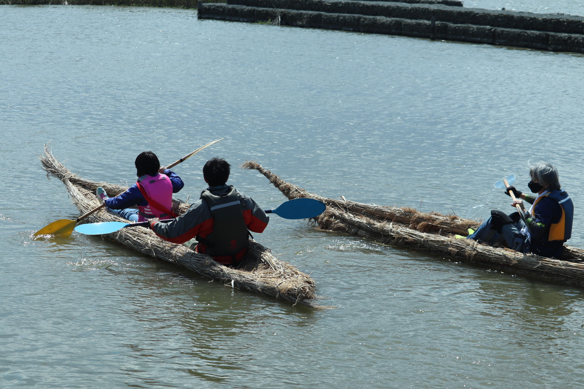 湖岸で自ら葦を刈り、その葦を束ねて自ら葦舟を作り、その葦舟を自ら漕いで、その性能を競う大会を実施します。