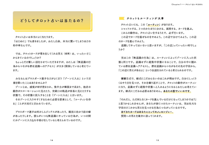 という工夫を施しています。「勉強しなきゃ」「覚えなきゃ」という思い込みを取り払い、興味がある人はもちろん、ない人も「タロットって、こんなに面白い世界だったんだ!」と思ってもらえる、そんなきっかけになればいいな、と願っています。