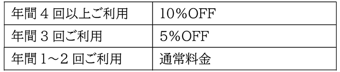 更に年間の利用回数に応じて、以下の特典を受けることができます。