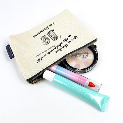 サイドには、I'm doraemonのロゴタグがついています。シンプルですが、小物が分けて入れられて機能的なポーチです。