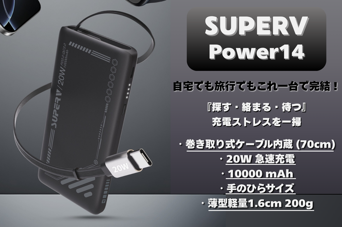 世界中の革新的なガジェットを日本に紹介するMarcys Store(マーシズ ストア)は、この度、香港の電子機器メーカーであるSUPERV LTDが製造する新型モバイルバッテリー「Power14」のクラウドファンディングプロジェクトを、クラウドファンディングプラットフォームCAMPFIREにて開始しました。