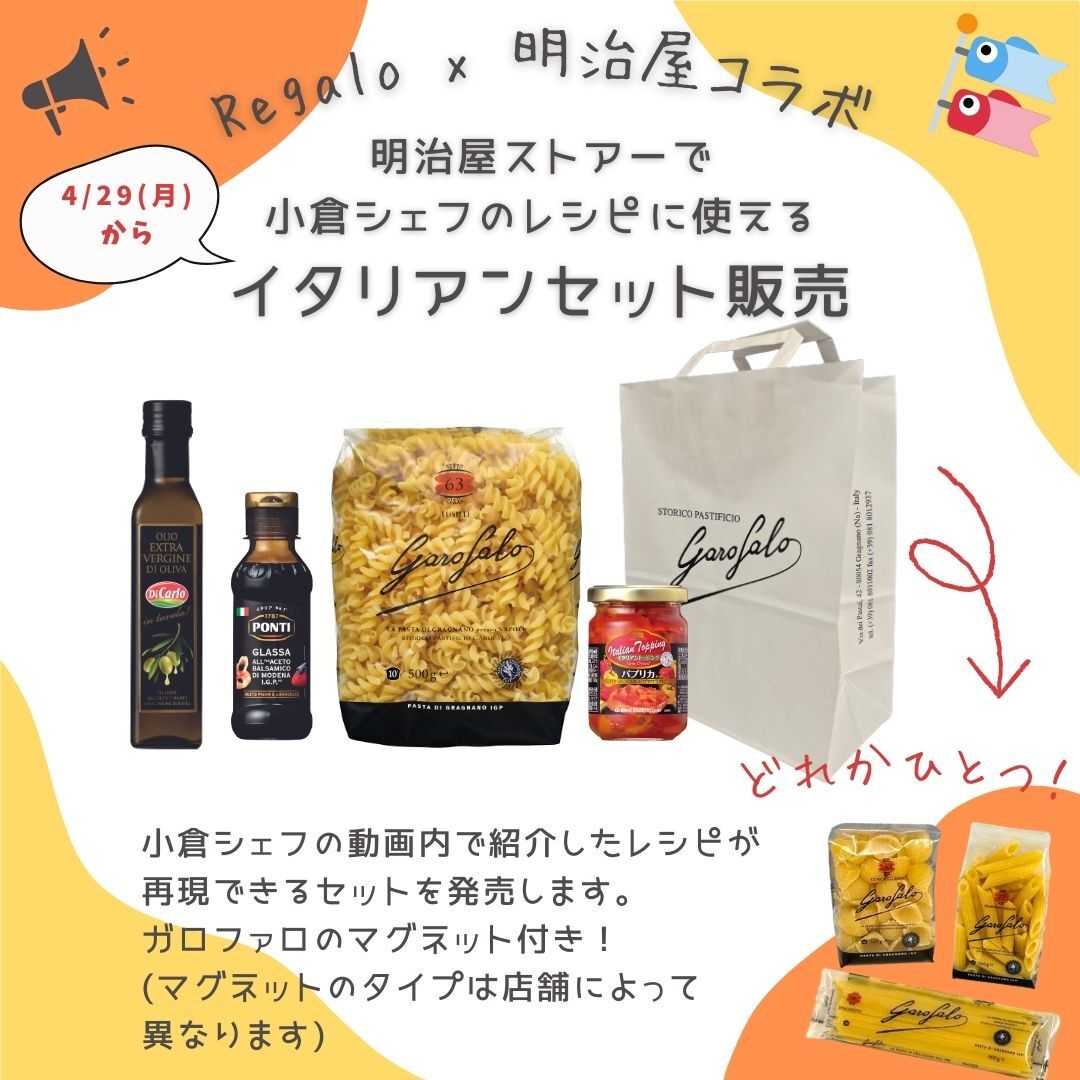 イタリアンレストラン『Regalo』と『明治屋』がコラボ! Regaloキッズデーにご招待! 「Instagram ガロファロ ショートパスタ 写真投稿キャンペーン」開催中 小倉シェフのレシピに使えるイタリアンセットの販売も!