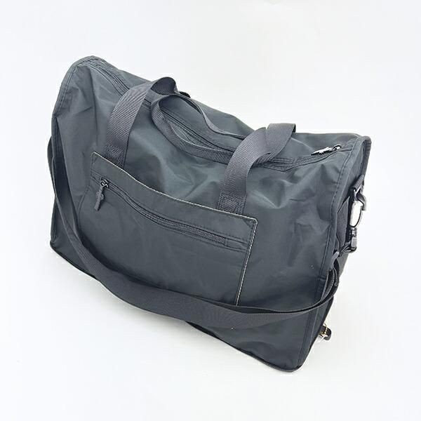 **折りたたみボストンバッグ(L) **55cm×34cm×23cmの38Lがございます。どちらも一見シンプルなブラックバッグですが、底面にあしらわれたストライプデザインがさりげない可愛さを添えています。