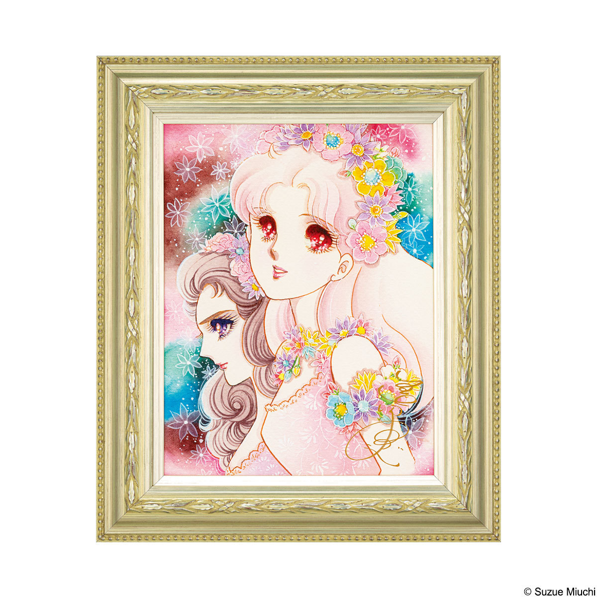 物語が大きな転機を迎える単行本36巻の表紙を飾った、愛らしい花飾りを着けたマヤと亜弓の原画を、美術作品の複製にも使われる高精細な“ジークレー”という技法でキャンバスに再現。一点一点に、『ガラスの仮面』作者・美内すずえ先生の直筆サインが入れられます。