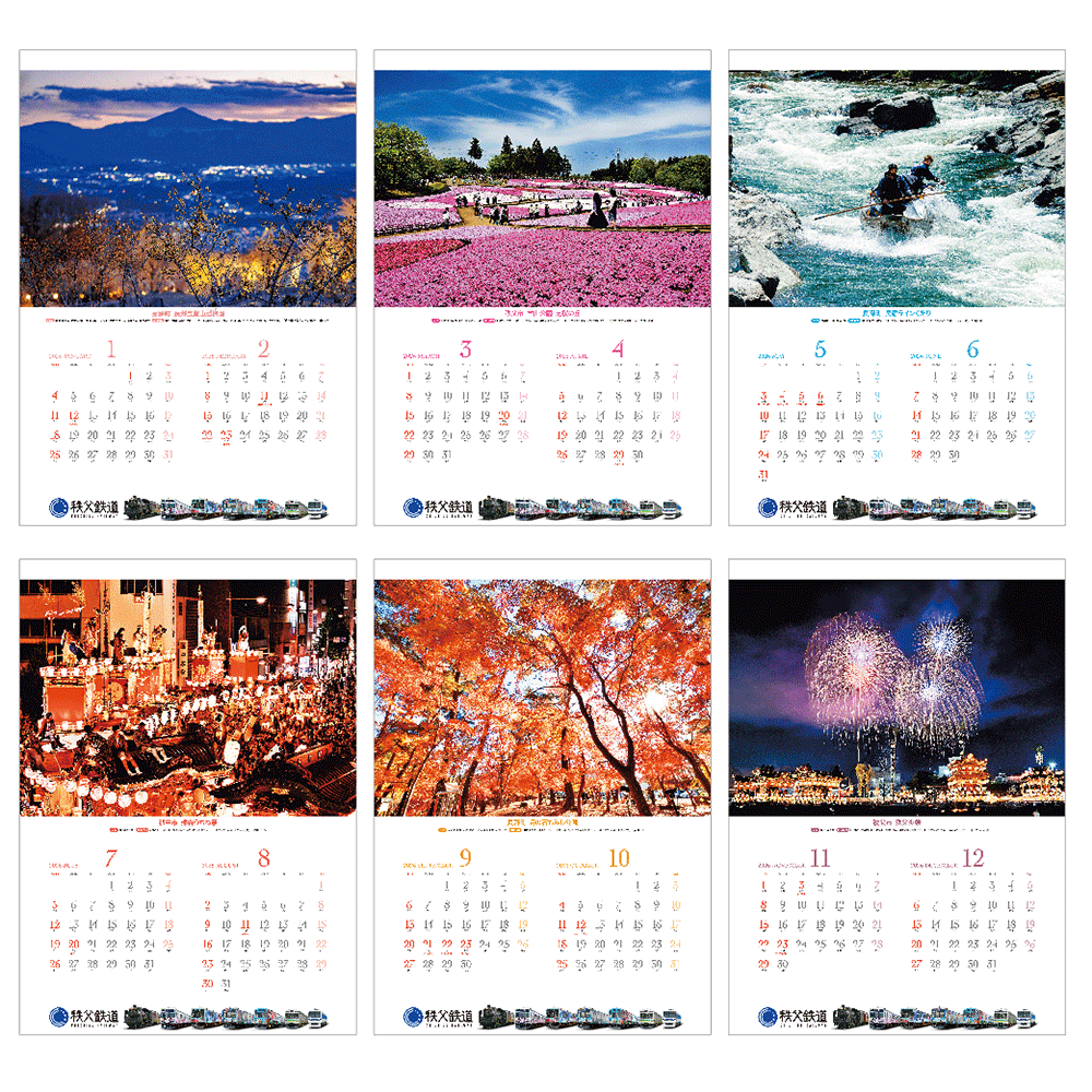 秩父鉄道沿線の自然や祭事が題材となっており、秩父路の美しい季節の移ろいを感じていただけます。