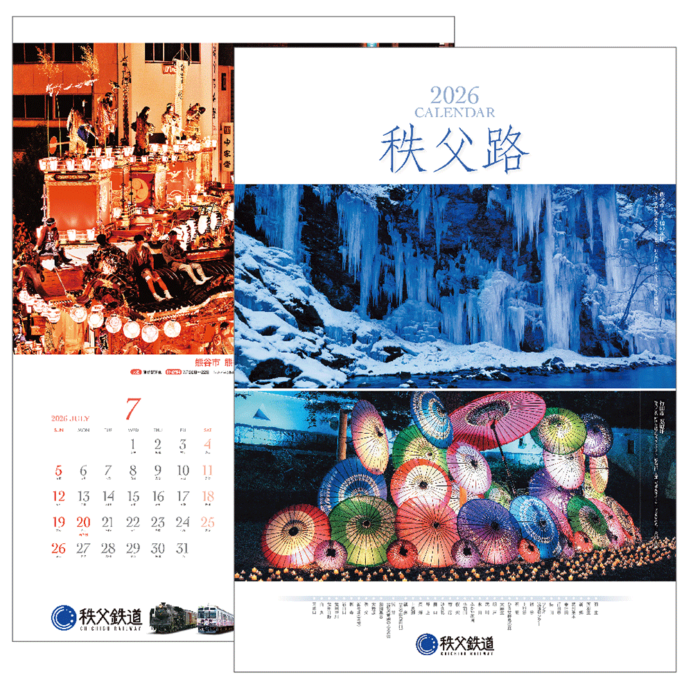 秩父鉄道株式会社(本社:埼玉県熊谷市、代表取締役社長:牧野 英伸)では、2025年10月11日(土)から、秩父鉄道沿線の四季折々の美景をおさめた「秩父路カレンダー」、SLパレオエクスプレスの迫力が伝わる「SLカレンダー」、秩父鉄道の電車や電気機関車を集めた卓上タイプの「秩父鉄道の車両カレンダー」の2026年版を販売します。各カレンダーには、第22回秩父鉄道写真コンテスト入賞作品の力作から選りすぐった写真を使用しています。先行販売として、2025年10月5日(日)YOKOHAMAトレインフェスティバル2025においても販売を行います。