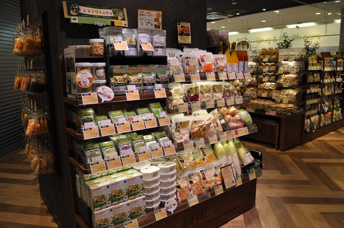 木目調で温かみのある専門店のような雰囲気の店内で、コロナ禍によってさらに高まる健康志向や安全・安心へのニーズにお応えするため、自然の恵みを生かした“オーガニック”商品、関西で育てられたおいしい“ローカル”商品、体に優しい“ヘルシー”商品、環境に配慮した“サステナブル”な商品などを豊富に取りそろえます。