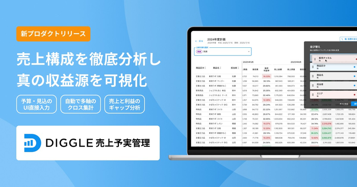 DIGGLE株式会社が新プロダクト「DIGGLE売上予実管理」をローンチ ──売上構成を徹底分析し、利益向上に資する販売戦略を実現