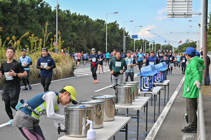 そこで、マラソン大会の新たなスタイルとして、ランナーは全員マイボトル・マイカップを持参するというルールを設定。補水は、コース上に200ヶ所以上平均200m置きに設置された2,500個以上のジャグ(給水器)で行います。これはペットボトルやプラカップゴミを出さないマラソン大会で、環境配慮型のイベントスタイルとしては世界初の挑戦となります。