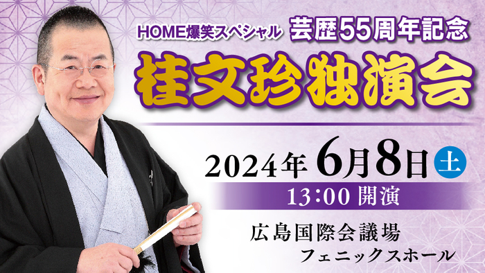 広島ホームテレビ(所在地:広島県広島市)は、主催で2024年6月8日(土)「HOME爆笑スペシャル 芸歴55周年記念 桂文珍独演会」を広島国際会議場フェニックスホールで開催します。上方落語を代表する桂文珍の「極上話芸」。抜群のセンスと庶民派の個性あふれる最上級の笑い!