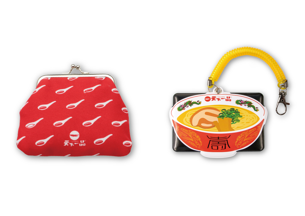 交通ICや会員証などを入れて使えるパスケース。麺をイメージしたスプリングコイル、裏面には50周年ロゴが入ったデザインです。