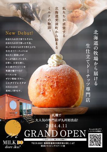 話題沸騰!札幌で連日大行列の北海道生仕立てドーナッツ専門店 「MILK DO dore iku?」が九州初上陸! 4月11日(木)福岡姪浜にオープン