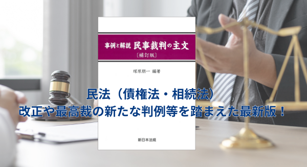 新日本法規出版株式会社(所在地:愛知県名古屋市中区、代表取締役社長:河合誠一郎)は、新刊『〔補訂版〕事例と解説 民事裁判の主文』(編著:塚原朋一 元東京高等裁判所判事)を2024年11月26日(火)に発売いたしました!