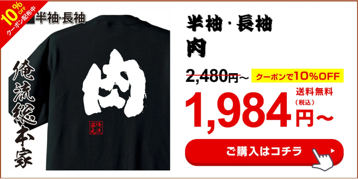 【5月29日『俺流肉の日』特別セール!人気肉Tシャツ10%OFFクーポン】 – 楽天ランキング1位多数受賞の俺流総本家が贈る特別キャンペーン!「肉好き必見のユニークデザインでウケ狙いバツグン」